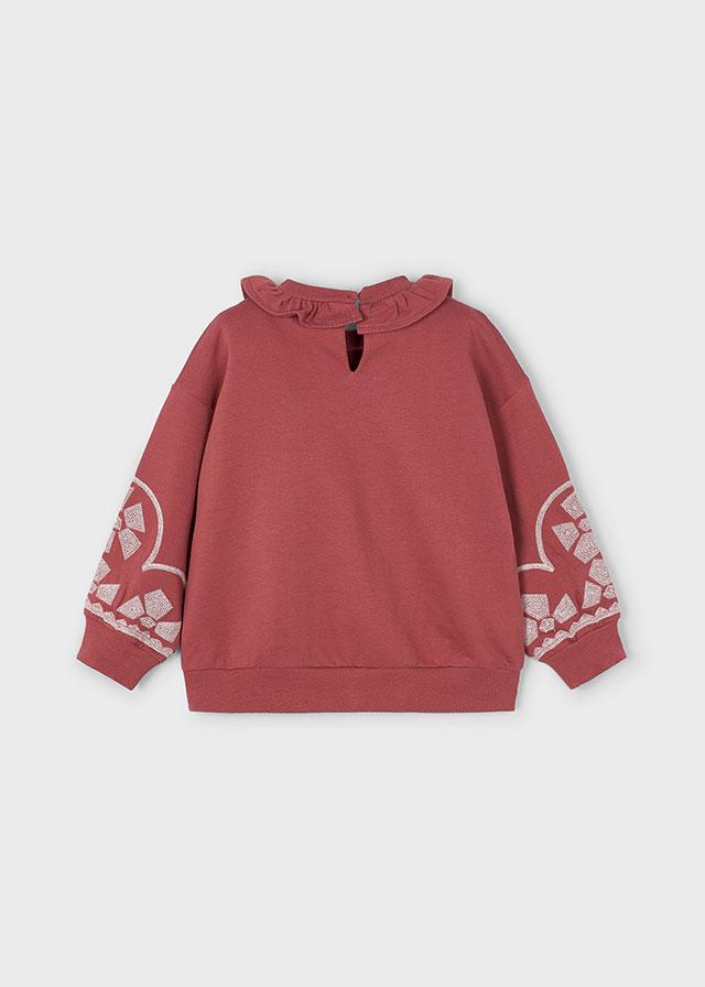 Sudadera de manga larga para niña. Cuello redondo con volante. Bajo y puños de punto elástico para un mejor ajuste. Elementos de adorno: bordado.