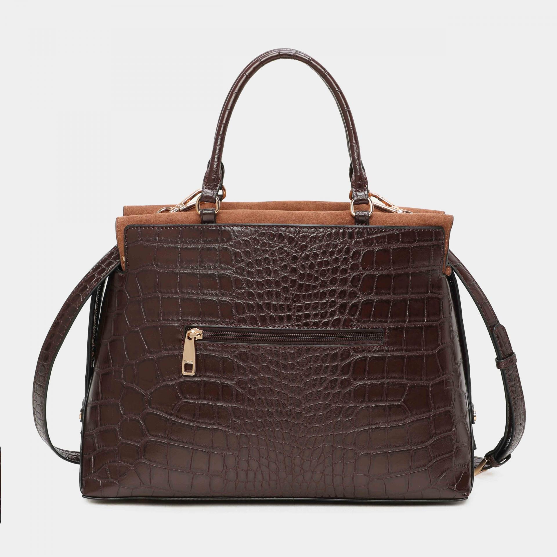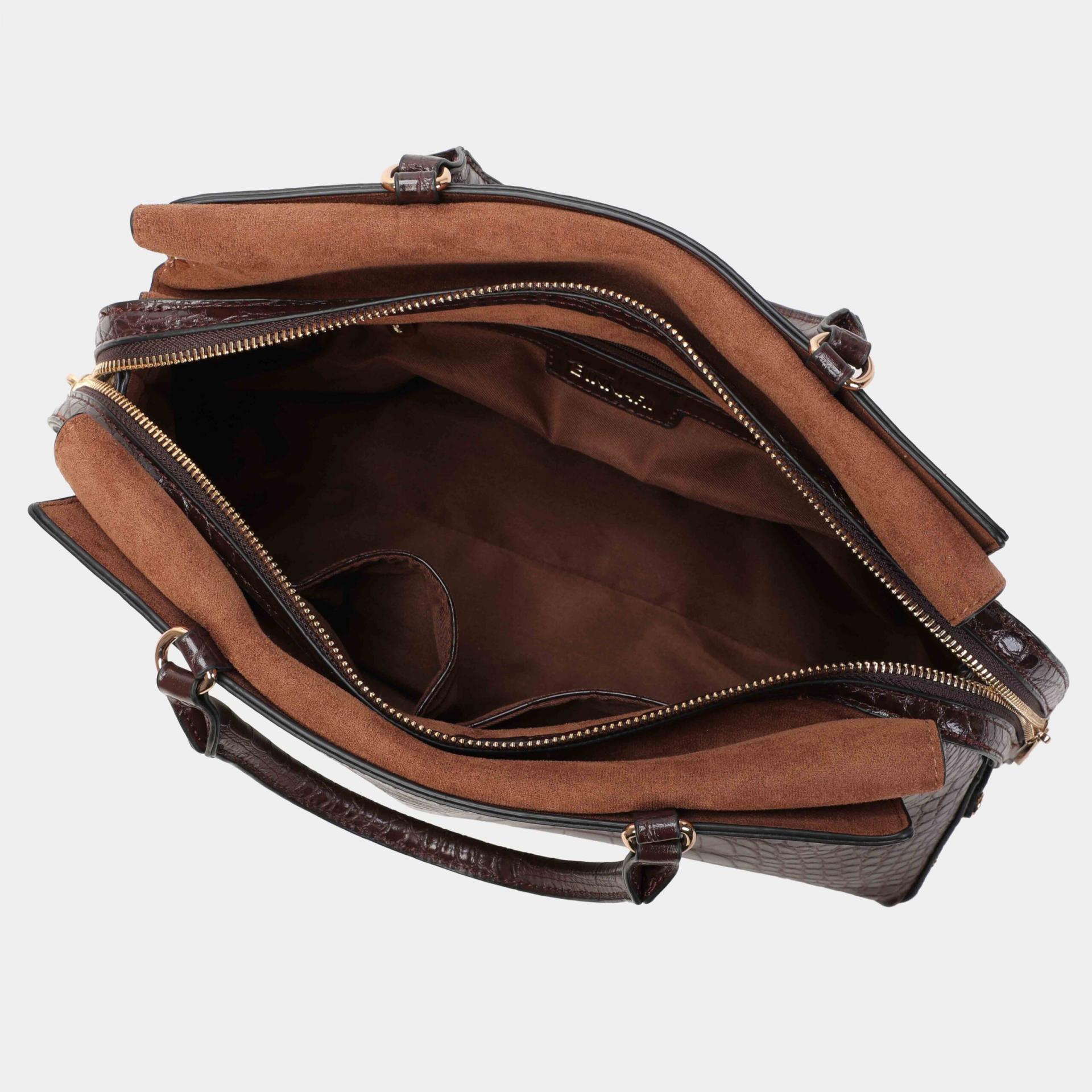 Bolso de mano Mandy confeccionado en coco sintético, además de detalles en antelina. Está disponible en color negro, cuero y marrón. De tamaño mediano pero capaz de guardar todo lo necesario. Bolso super práctico para el día a día. Se accede a su interior por medio de una cremallera . En él, encontramos 3 bolsillos, uno de ellos con cremallera.Cuenta con dos posiciones, mano y bandolera.
