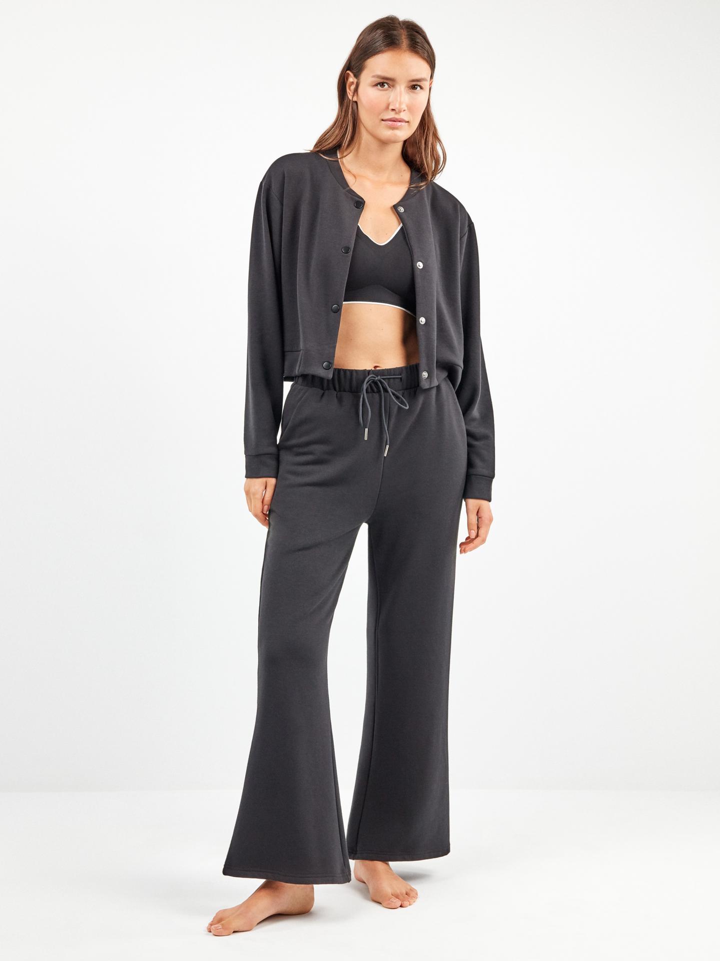 Chaqueta tipo bomber con botones metálicos y lacados tipo clip en el frontal. Confeccionado en felpa elástica que le proporciona suavidad y al estar felpada en el interior, le aporta un extra de calidez.