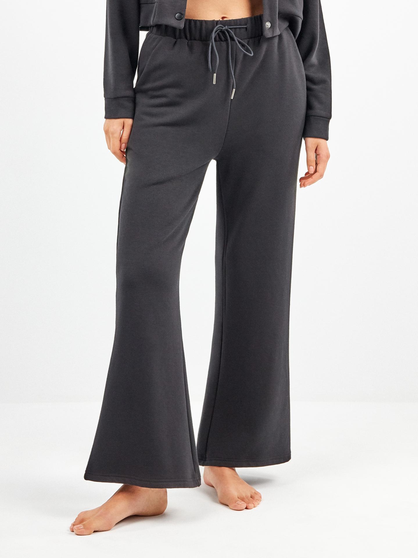 Pantalón recto anudado cintura en felpa fina y algo elástica lo que permite dar ligereza a la prenda haciéndola más femenina. Además el pantalón está felpado en el interior lo que le proporciona un extra de calidez.