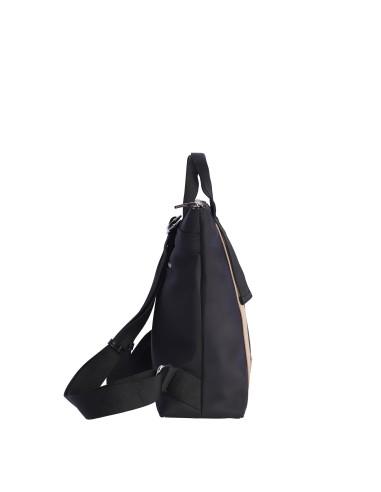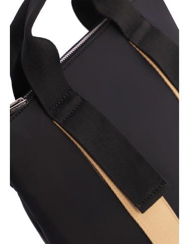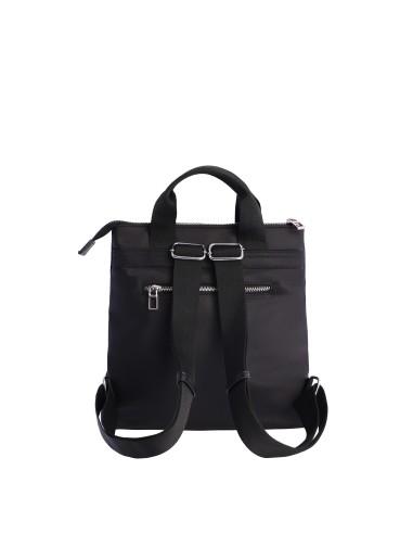 Tiene cierre de cremallera con tirador metálico con logo, dispone de tres bolsillos interiores, dos delante y uno detrás con cremallera, más otro exterior detrás también con cremallera. Tiene dos asas en la parte de detrás para convertir en mochila.