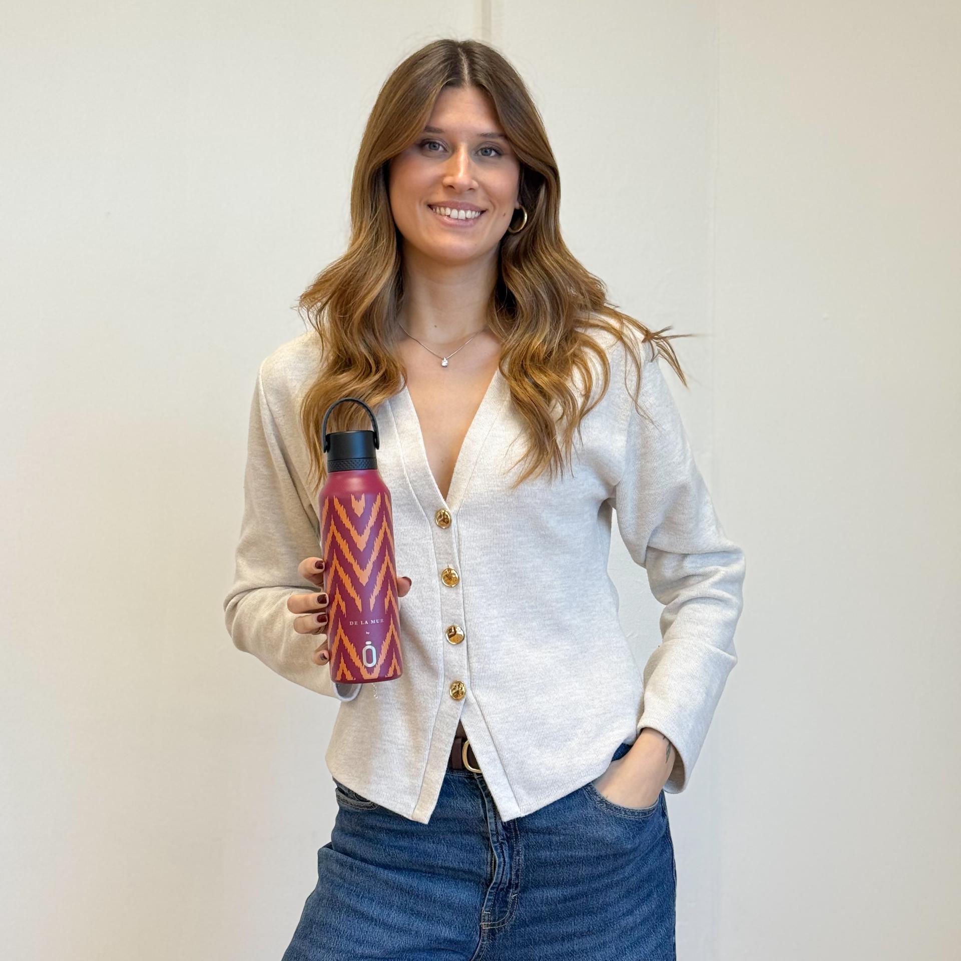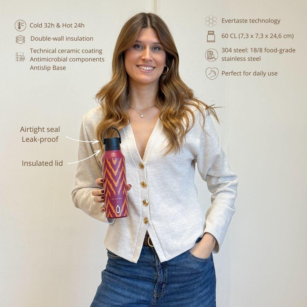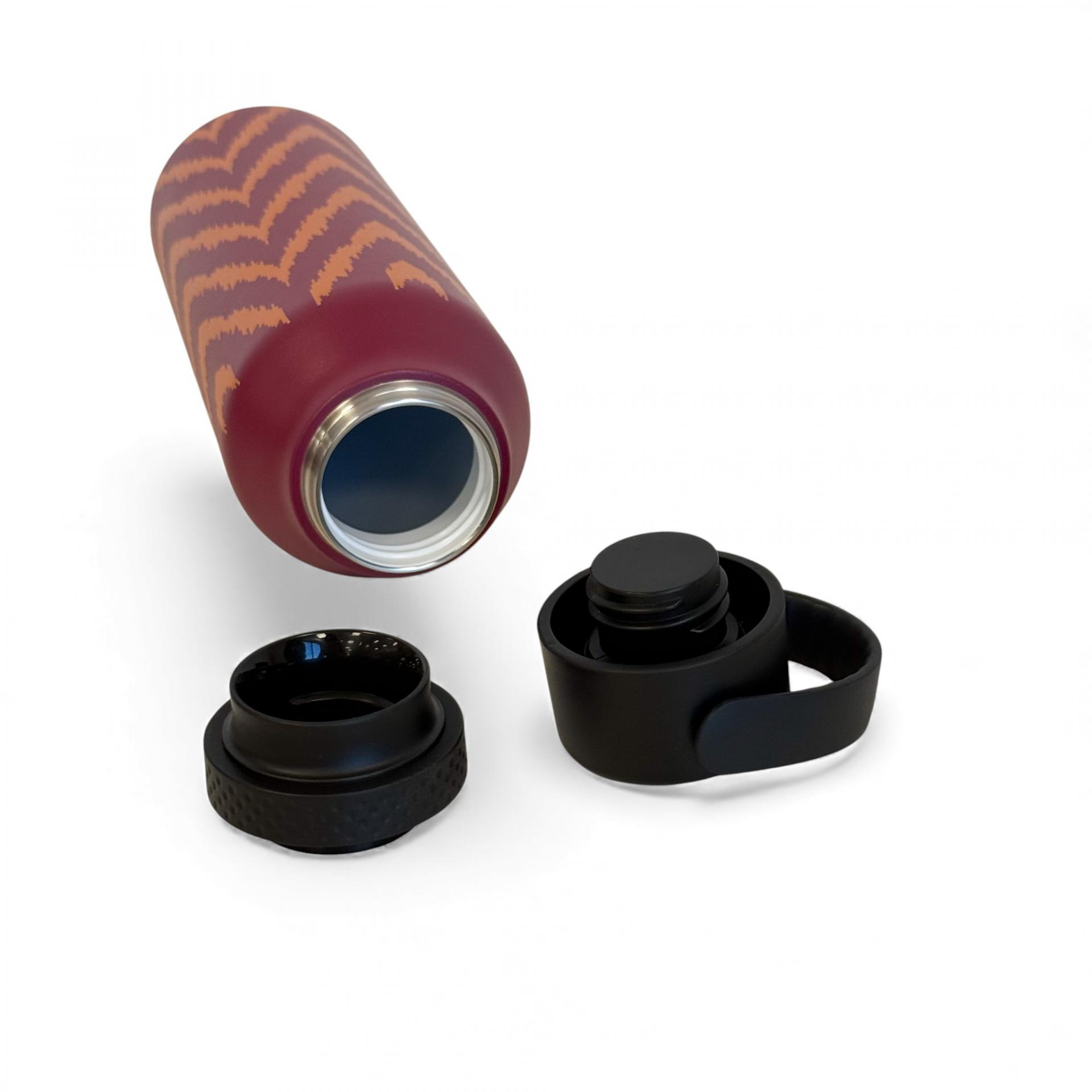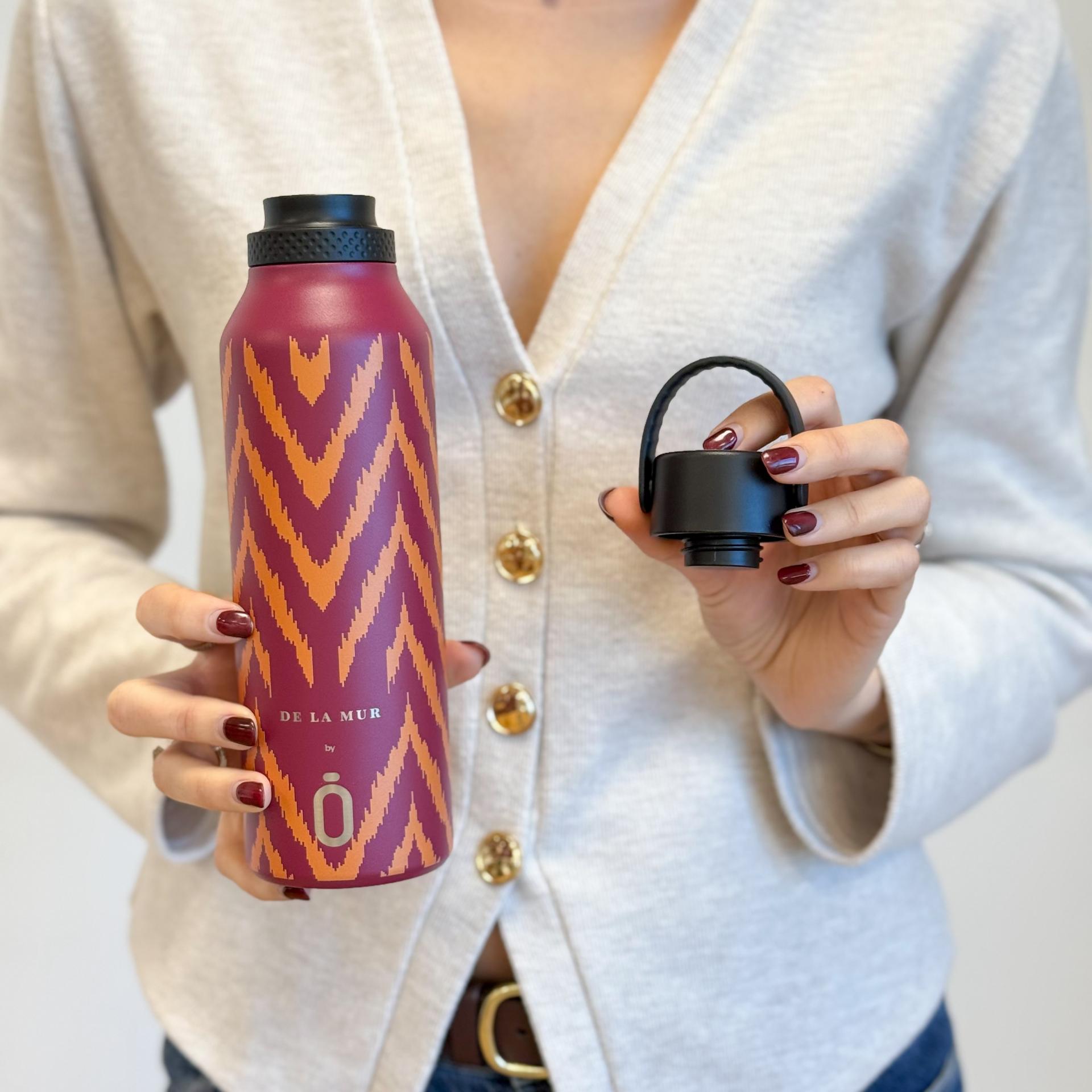 Botella De La Mur x Runbott. Con estampado tipo zigzag en tono rosa fucsia y naranja.