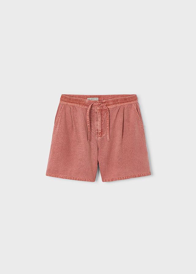Bermuda para niño confeccionada en un tejido con lino, de aspecto fresco y actual. Cintura elástica con cordón ajustable y bolsillos delanteros. Dos bolsillos de parche en la parte trasera. Por motivos de seguridad, las tallas pequeñas (2-5 años) incluyen una bragueta simulada sin cremallera.v