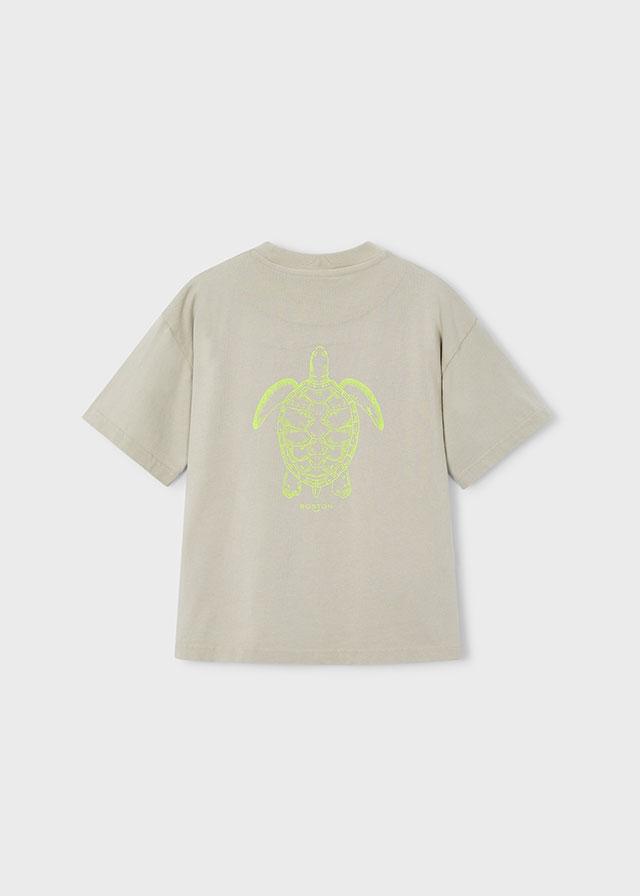 Camiseta con cuello redondo y manga corta. Diseño recto. Ilustración de una tortuga en la parte frontal y en la parte trasera.