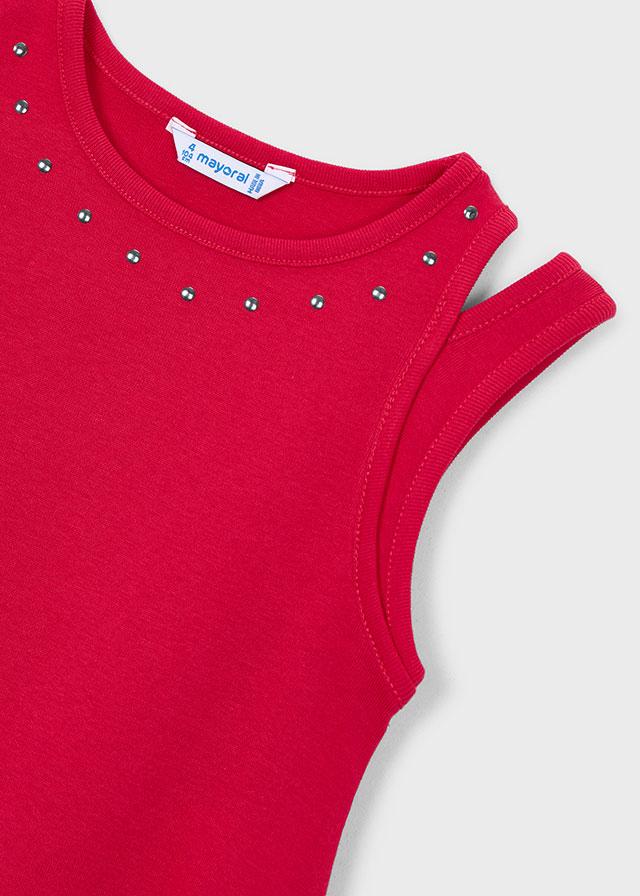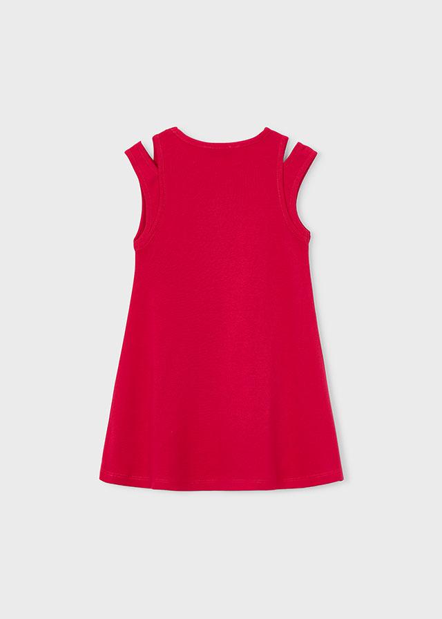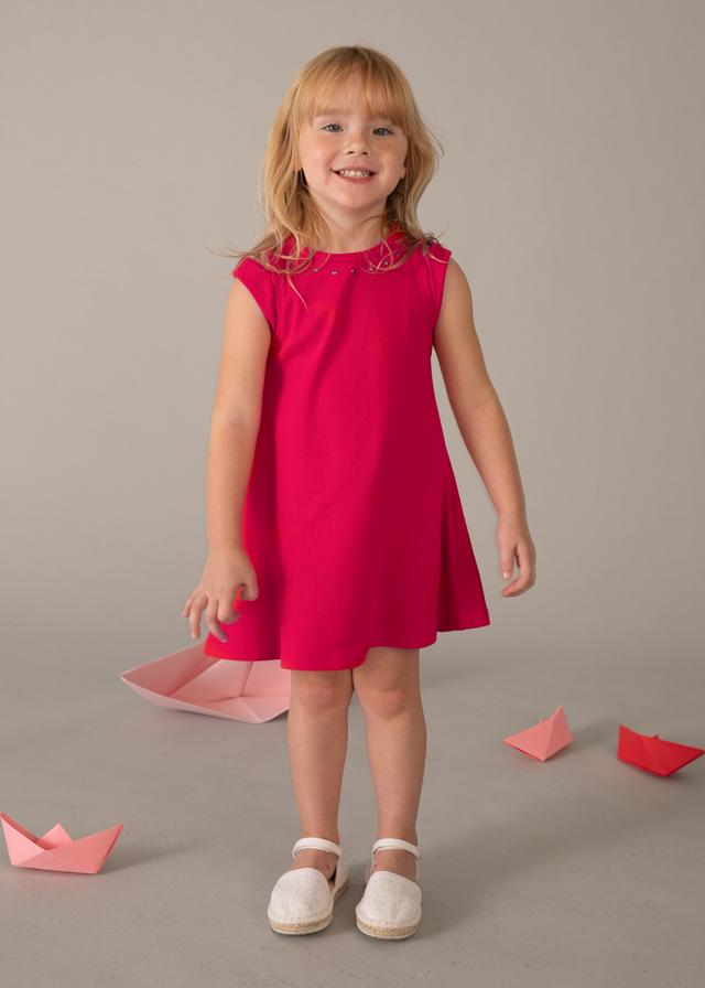 Vestido con tachuelas para niña. Confeccionado en 100% algodón. Cuello redondo. Sin mangas con detalle cut out en los hombros. Diseño con tachuelas decorativas en el delantero. Bajo amplio. Modelo sin cierre. Disponible en la talla desde los 2 a los 10 años.