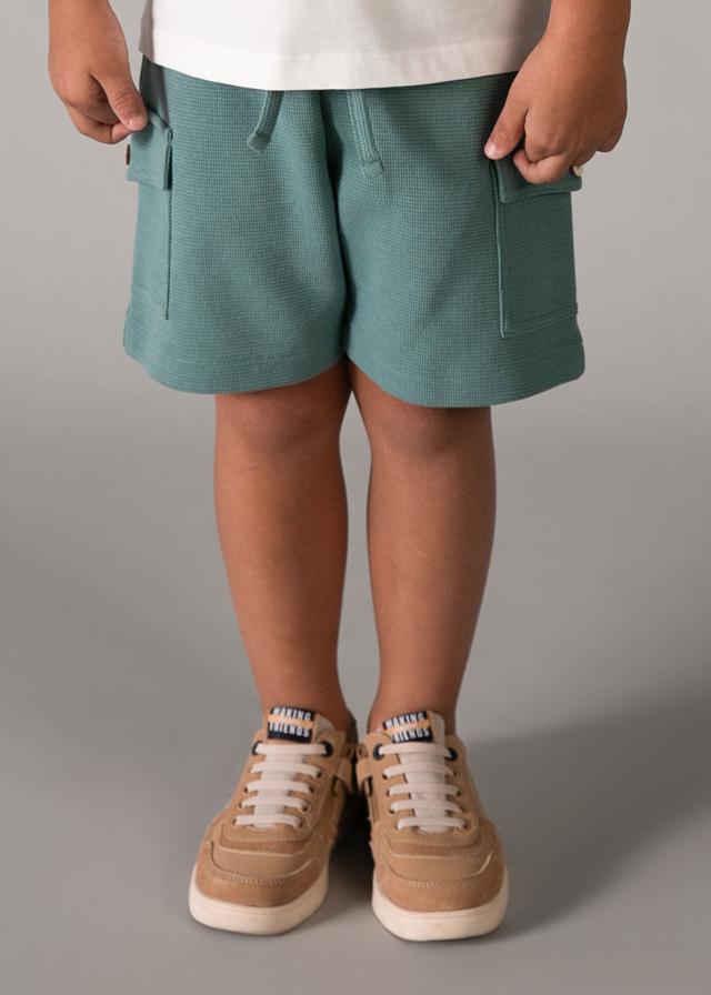Conjunto de ropa para niño, compuesto por dos camisetas de manga corta y un pantalón corto de chándal. El pantalón corto incluye una cinturilla elástica para un ajuste cómodo, presenta dos bolsillos laterales.