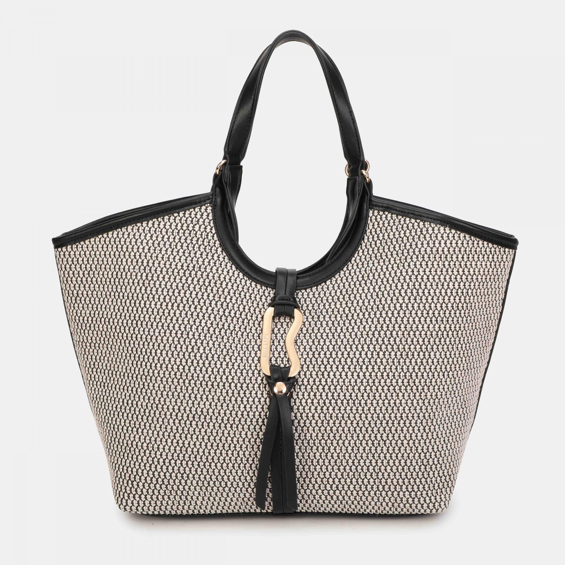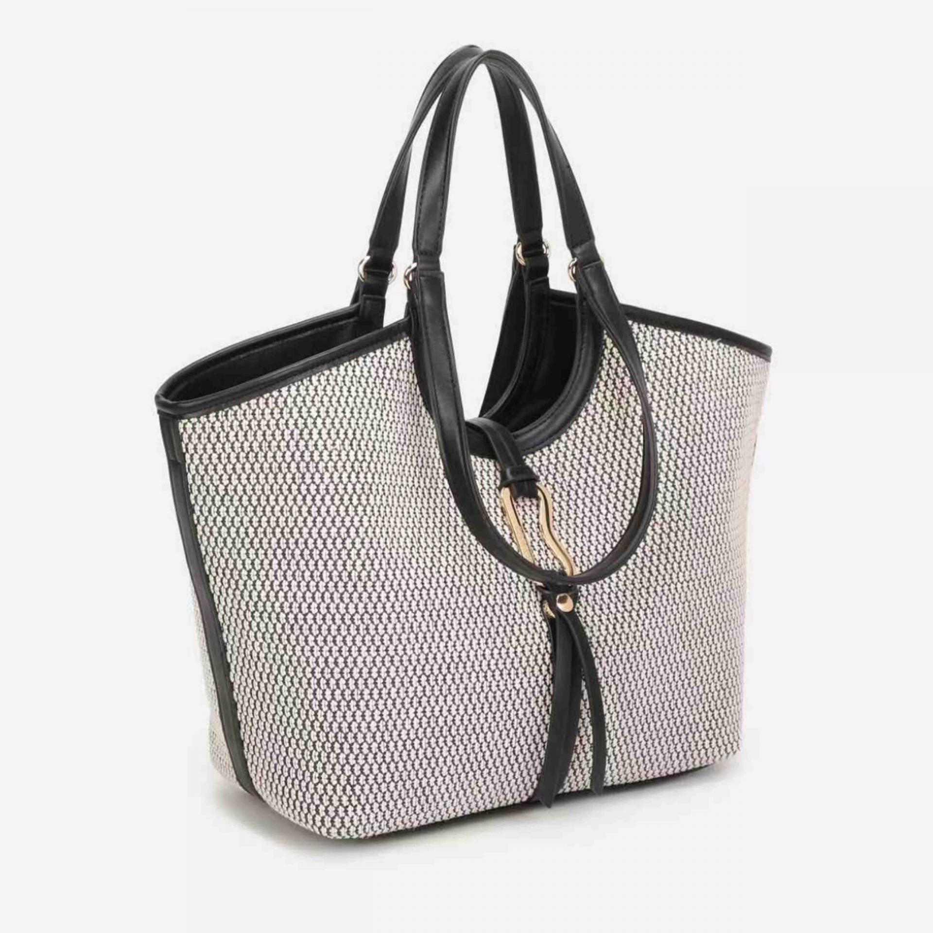 Esta versión XL del bolso de mano pequeño Lina está confeccionada en rafia y detalles en pu de alta calidad. Tiene dos posiciones; mano y bandolera, asa ajustable en su interior. Encontramos diferentes bolsillos, uno de ellos con cremallera. Los detalles metálicos son de color oro claro.
