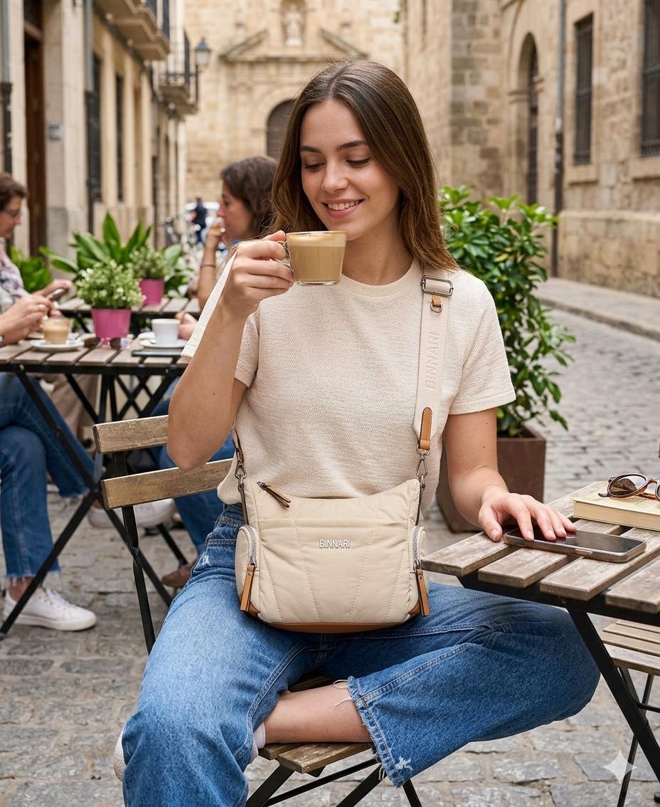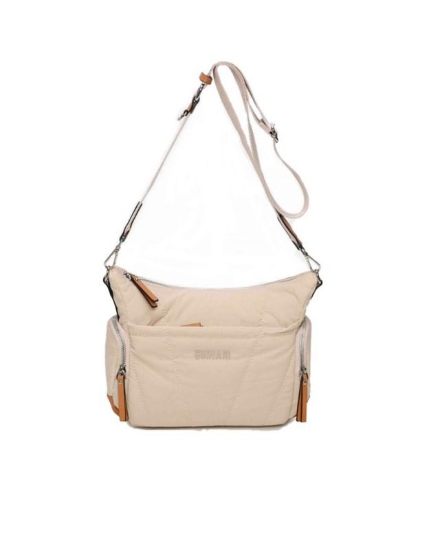 Este bolso hobo destaca por su silueta relajada y súper cómoda, confeccionado en nylon ligero con refuerzos en PU. Su diseño incluye bolsillos laterales con cremallera, perfectos para tener a mano lo esencial, y una correa ancha regulable que permite llevarlo al hombro o en bandolera. Práctico, espacioso y muy fácil de combinar, es un modelo ideal para el día a día.