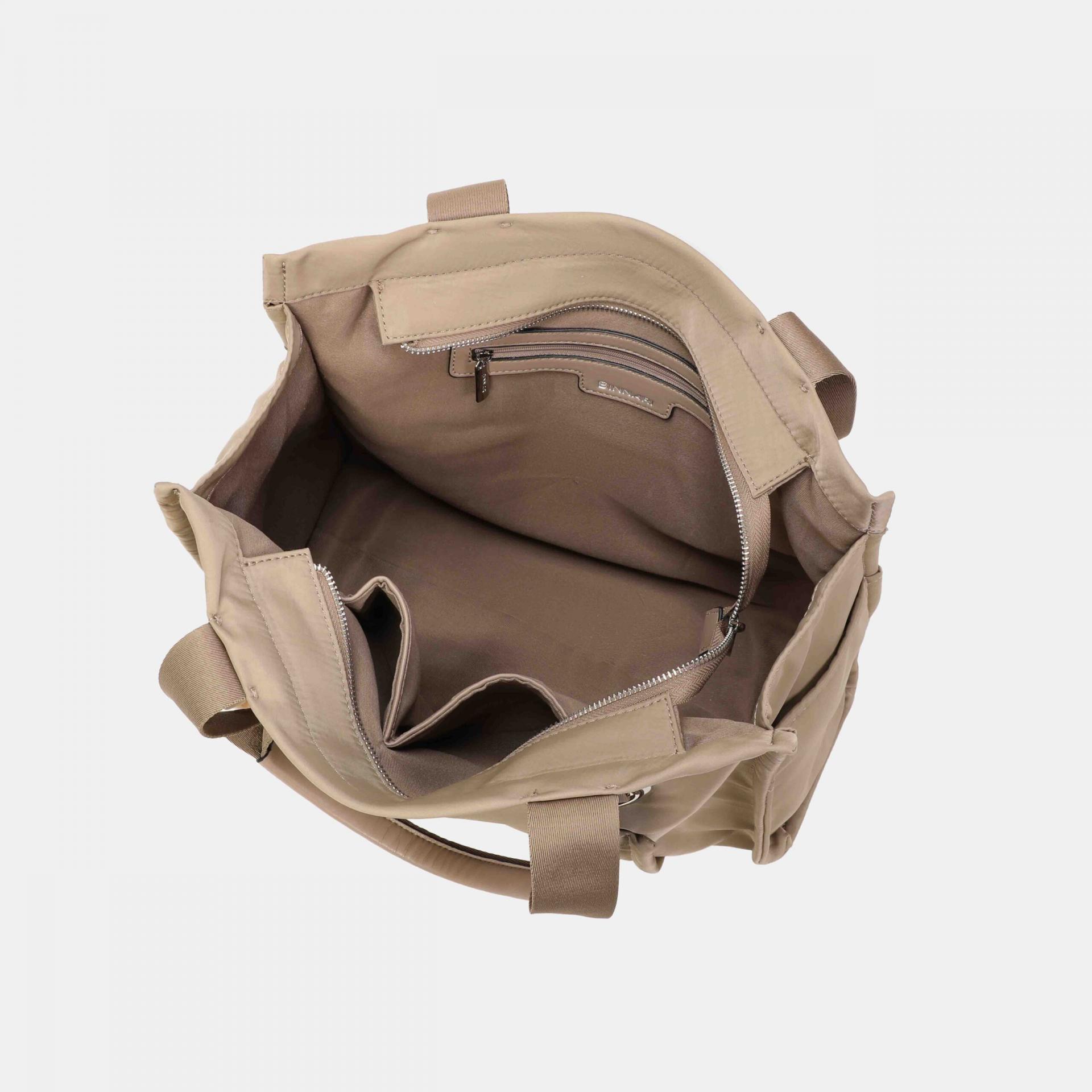 Entre los favoritos de la colección, este bolso se ha convertido en todo un best seller gracias a su ligereza y funcionalidad. Está confeccionado en nylon resistente, con asas anchas decoradas con el nombre de la marca y un detalle decorativo extraíble que aporta personalidad. Su formato es amplio y estructurado, con un bolsillo frontal muy práctico para tener lo esencial a mano. Un modelo cómodo, moderno y perfecto para el día a día.