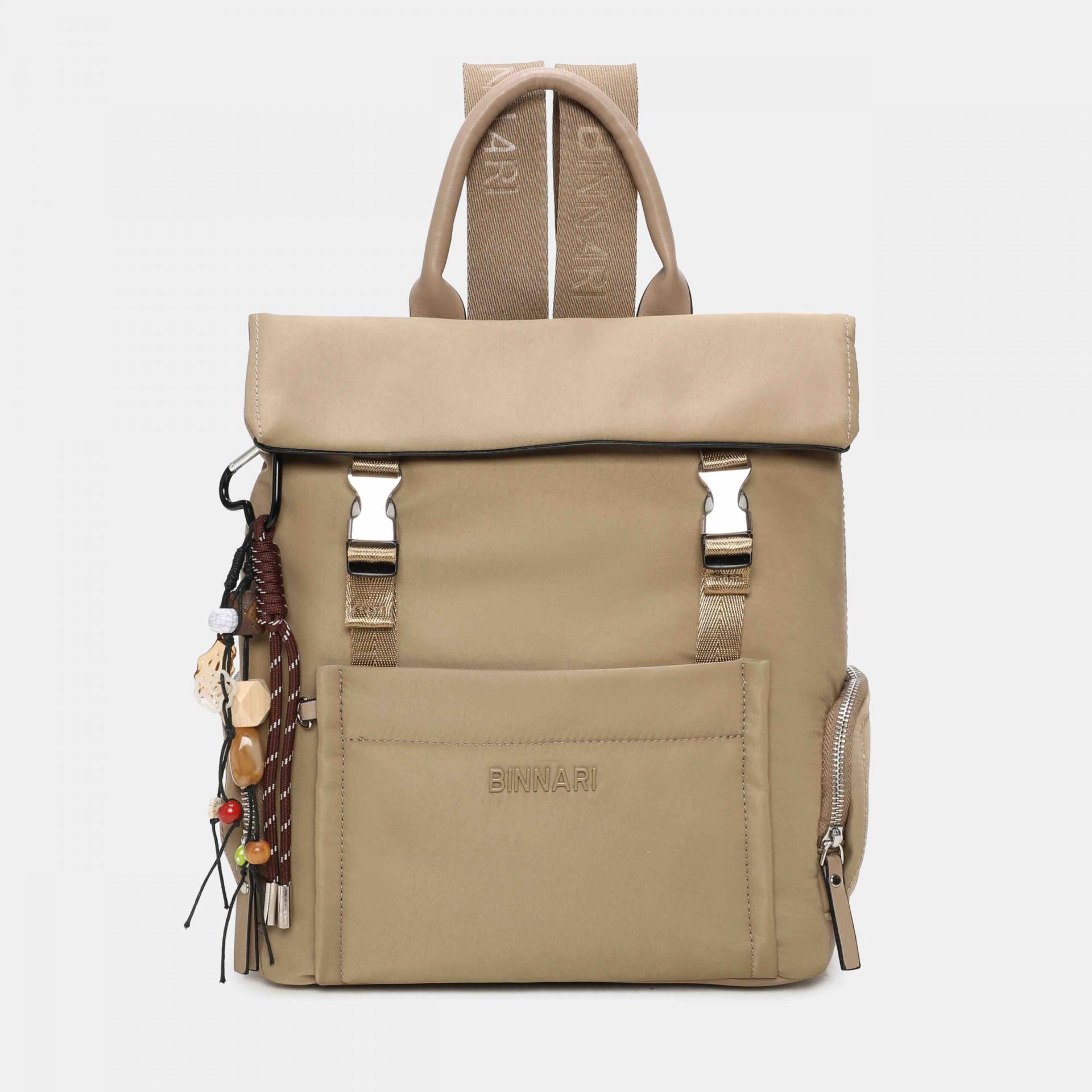 - Exterior: logo metálico Binnari tonal , bolsillo delantero y colgante decorativo extraible