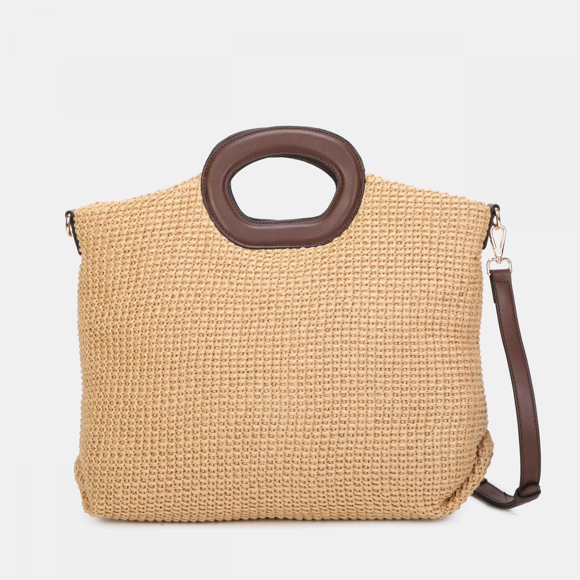 - Confeccionado en rafia textil de alta calidad y detalles en pu