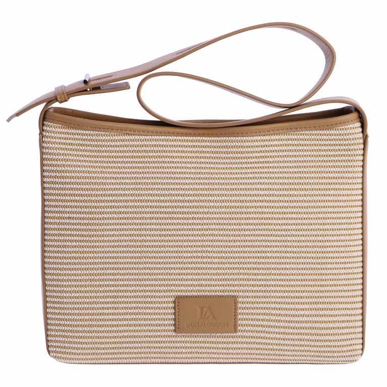 Bolso de hombro, Dorada de Don Algodon de fibras naturales a rayas y piel sintética con el logo en la parte frontal. Tiene cierre de cremallera.